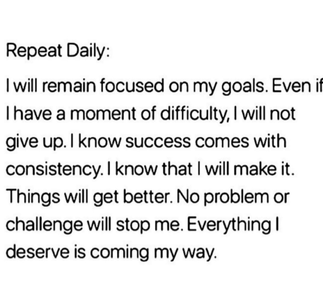 You have to speak positive affirmations, fill your spirit/mind with positivity or the word every day . Tell yourself the above quote ^^^ & keep going it may seem tough but trust that it’ll all be worth it.